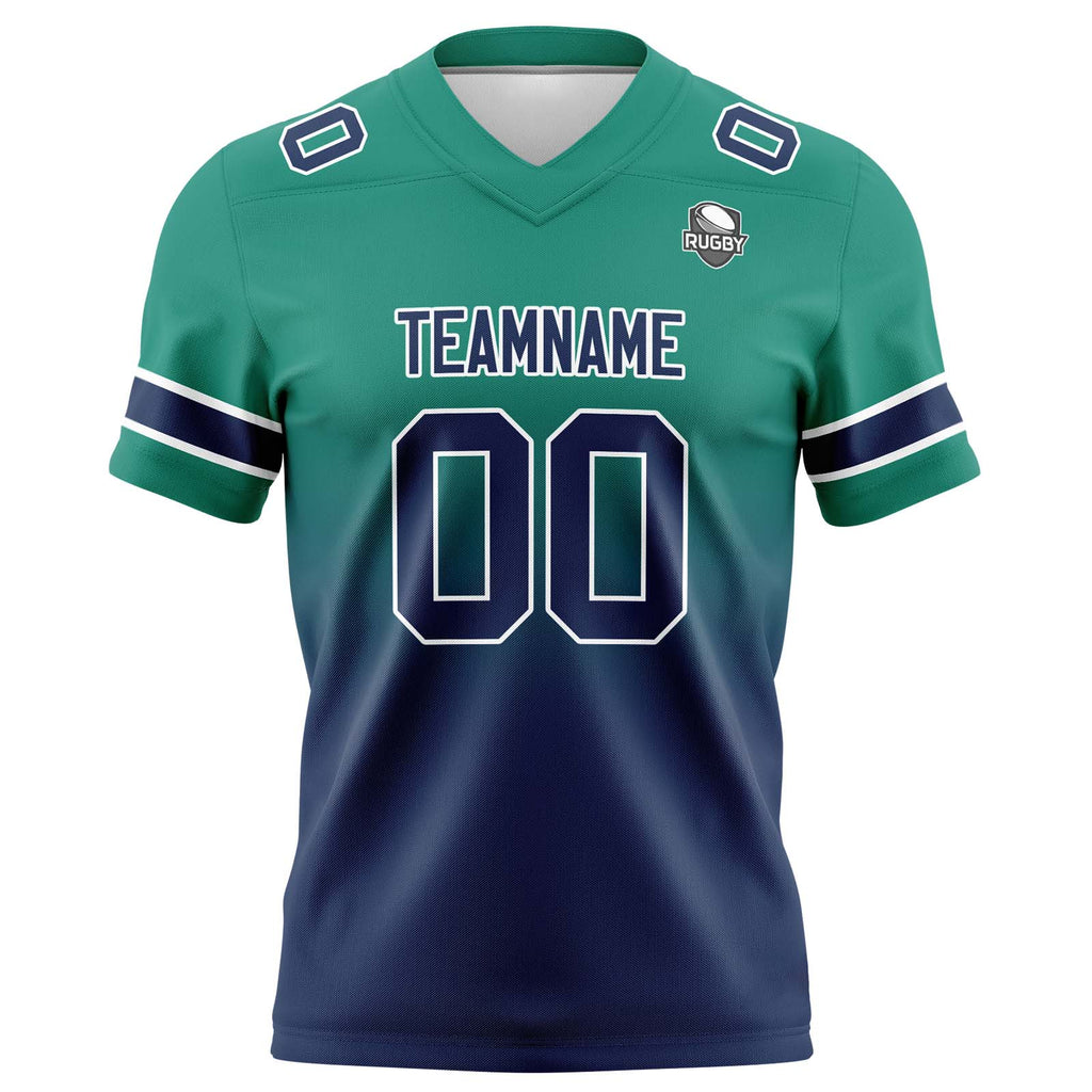 Custom Green Navy Gradient Football Jersey Personalized Football Shirts for Men Women Printed Team Name Number Logo