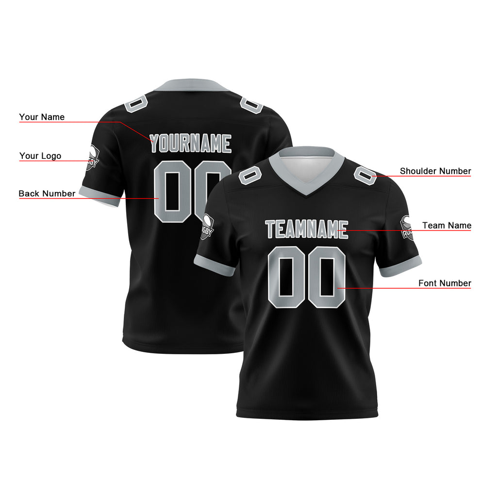 Custom Black Grey Football Jersey Personalized Football Shirts for Men Women Printed Team Name Number Logo