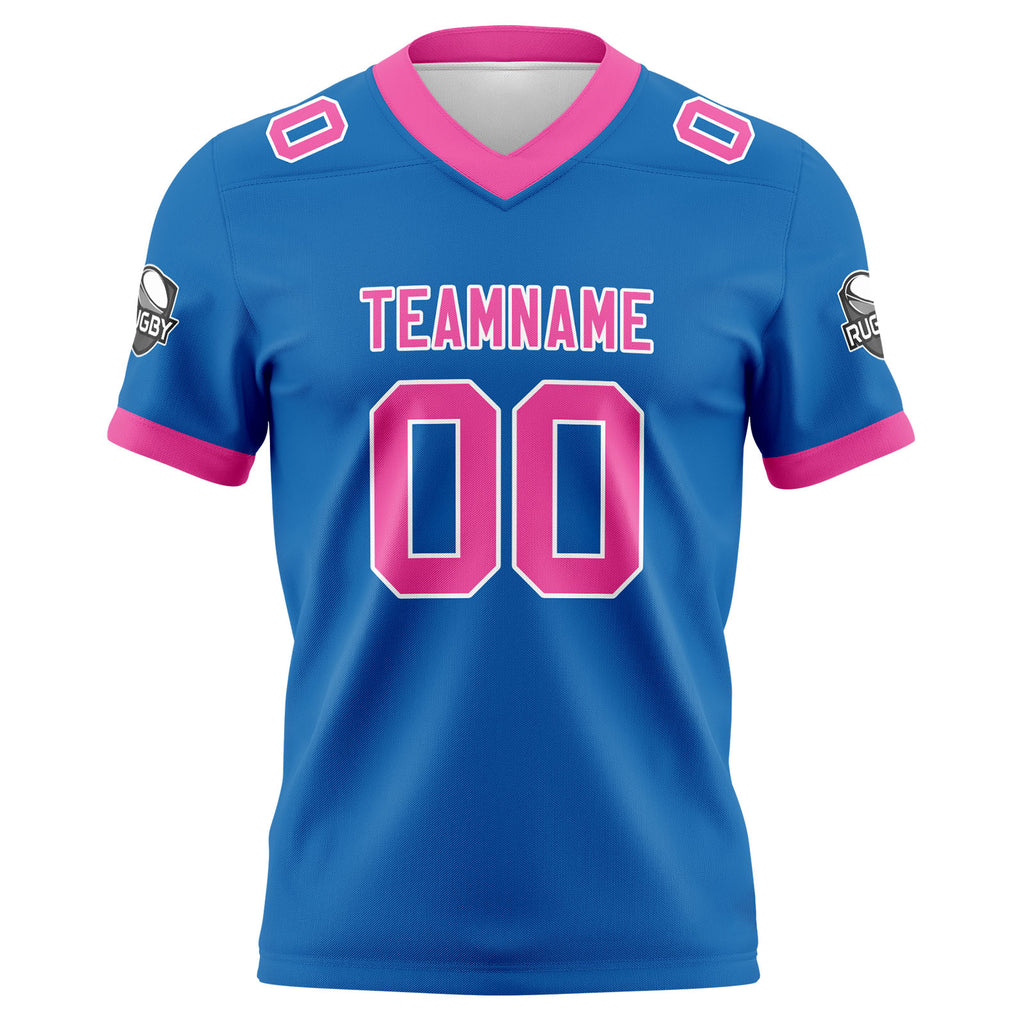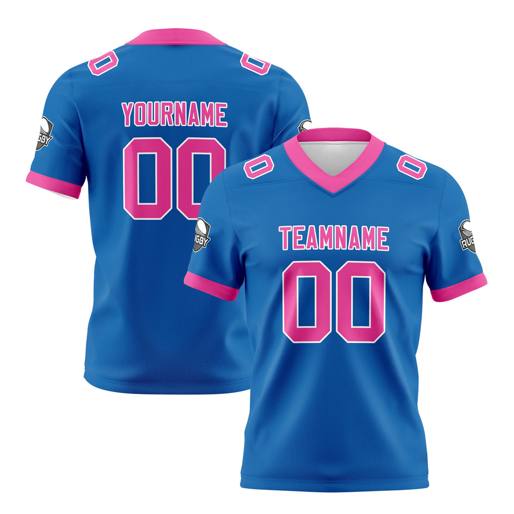 Custom Blue Pink Football Jersey Personalized Football Shirts for Men Women Printed Team Name Number Logo