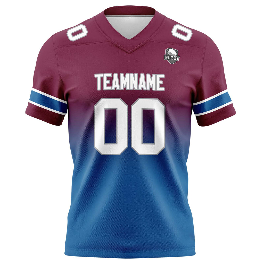 Custom Burgundy Blue Gradient Football Jersey Personalized Football Shirts for Men Women Printed Team Name Number Logo