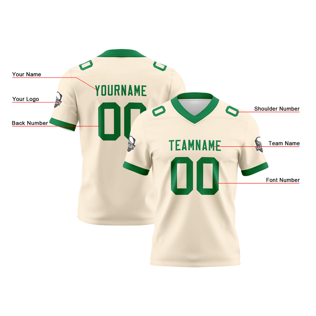 Custom Cream Green Football Jersey Personalized Football Shirts for Men Women Printed Team Name Number Logo