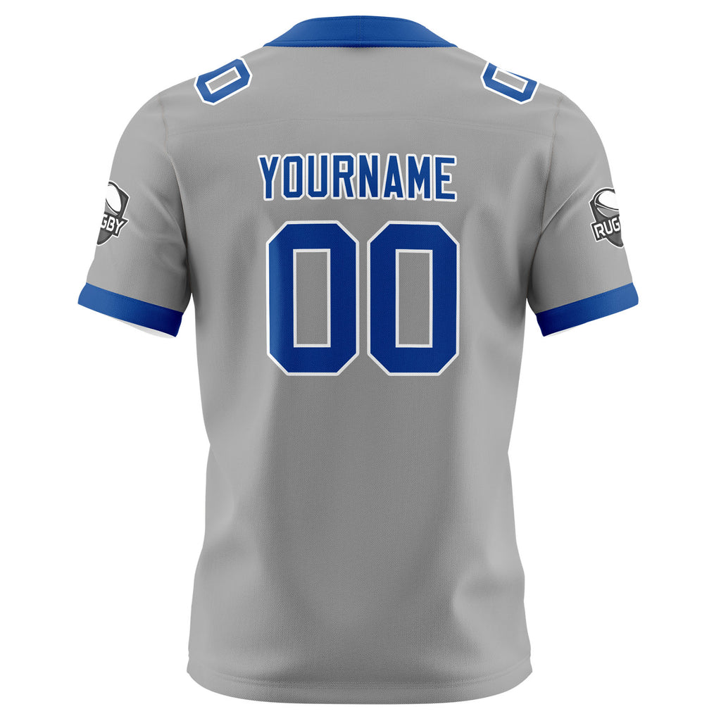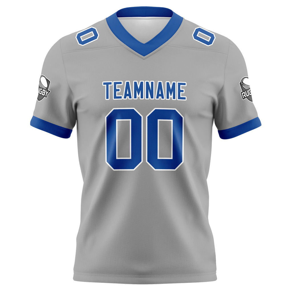 Custom Grey Blue Football Jersey Personalized Football Shirts for Men Women Printed Team Name Number Logo