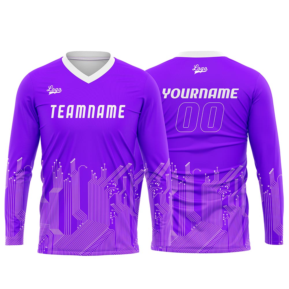 Custom Bright Purple White Basketball Soccer Football Shooting Long T-Shirt for Adults and Kids