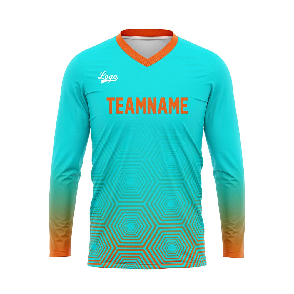 Custom Cyan Orange Basketball Soccer Football Shooting Long T-Shirt for Adults and Kids