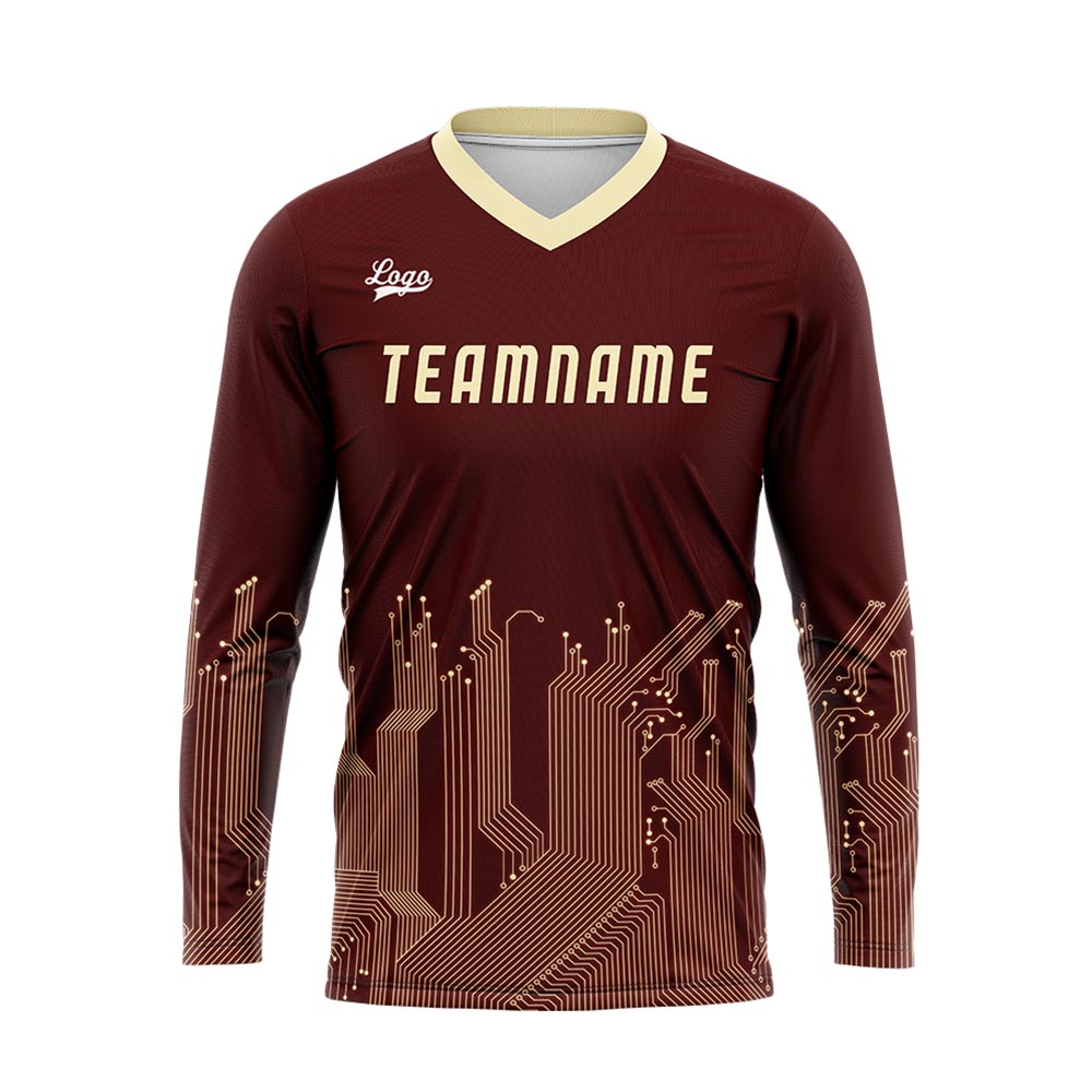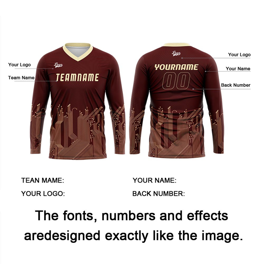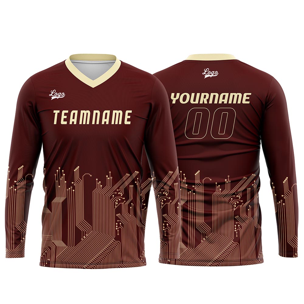 Custom Dark Red Light Yellow Basketball Soccer Football Shooting Long T-Shirt for Adults and Kids