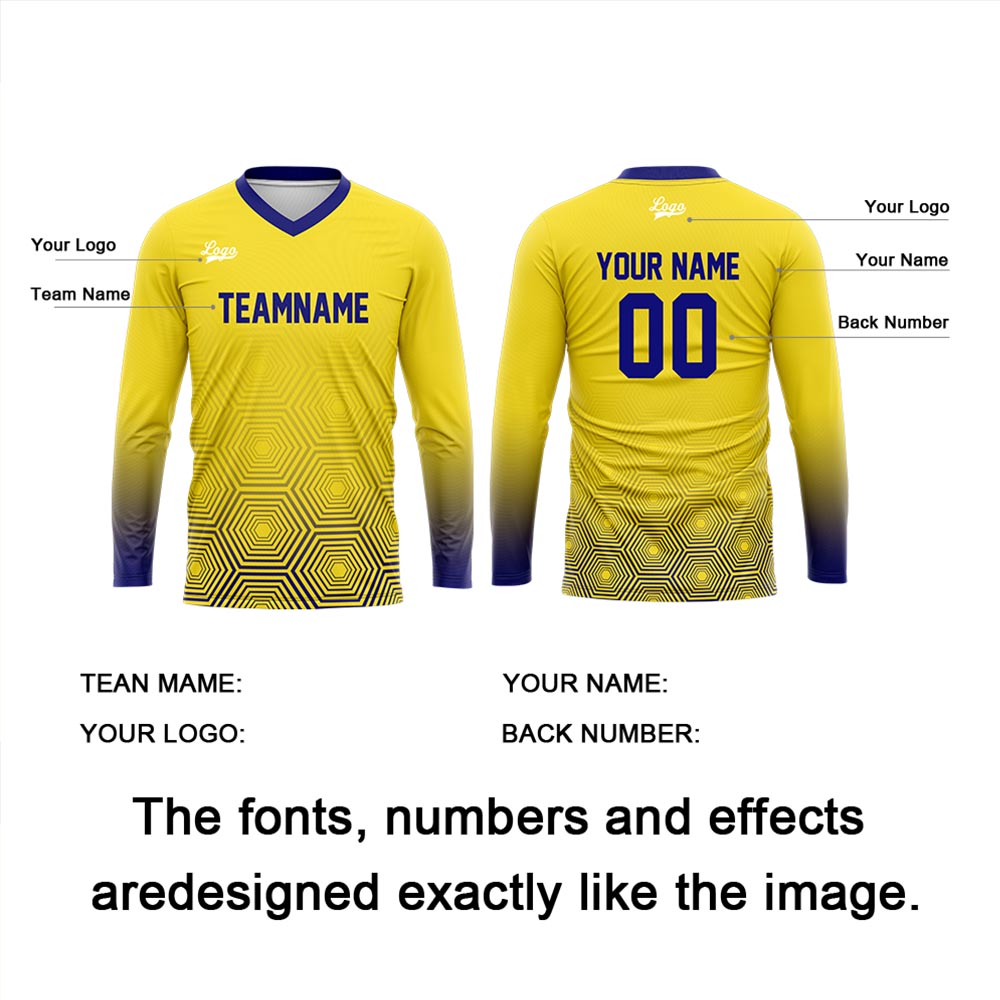Custom Yellow Dark Blue Basketball Soccer Football Shooting Long T-Shirt for Adults and Kids