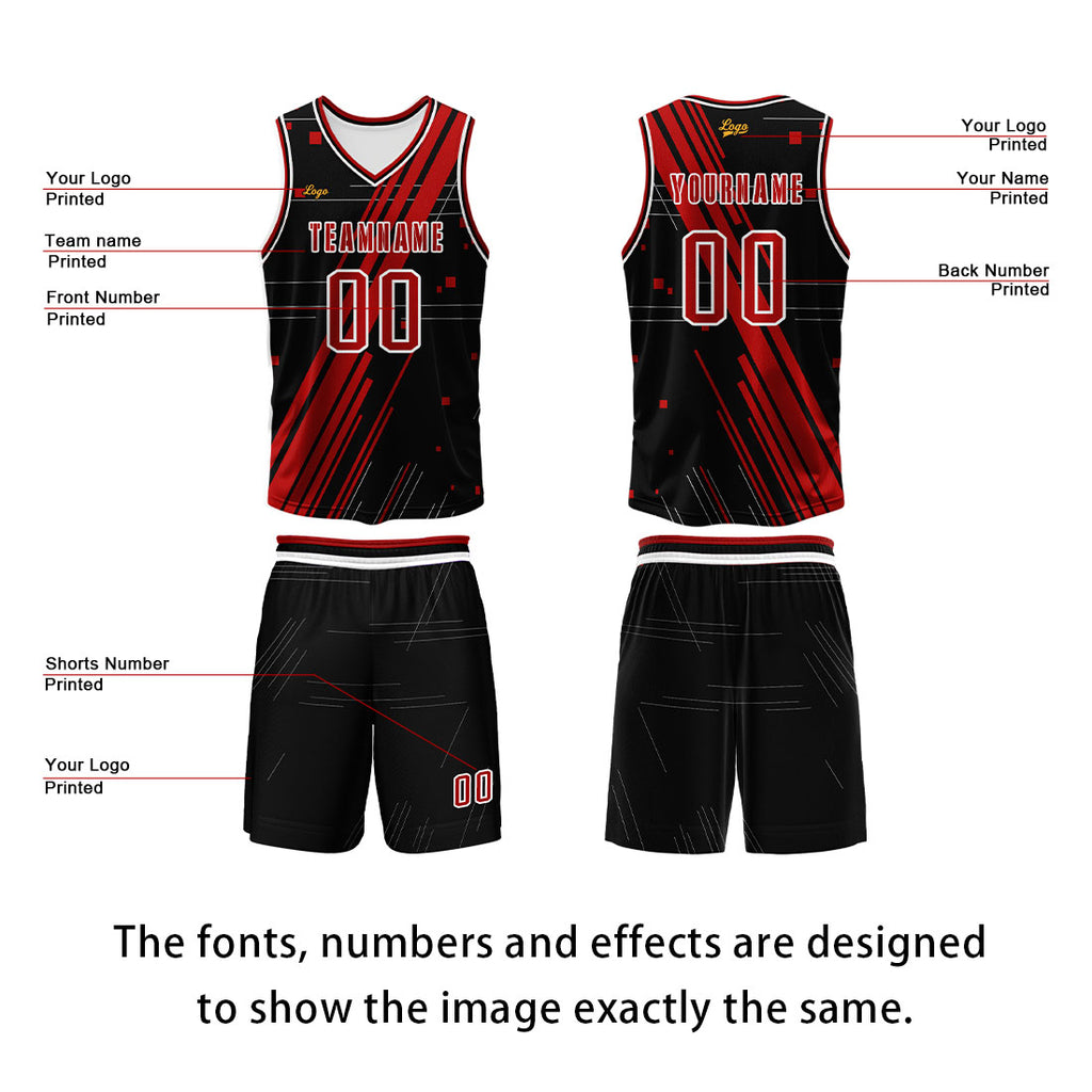 Custom Black Red Basketball Jersey Uniform Suit Printed Your Logo Name Number