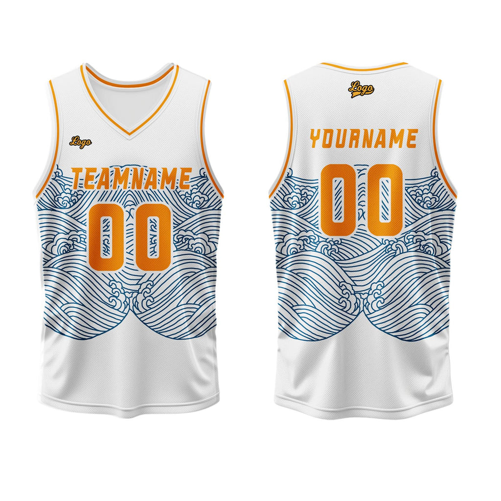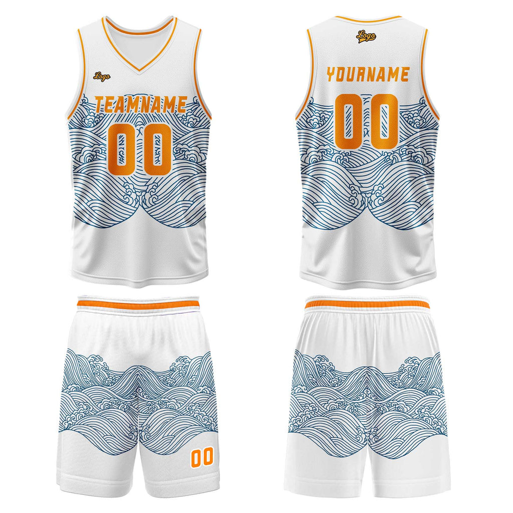 Custom White Blue Orange Basketball Jersey Uniform Suit Printed Your Logo Name Number