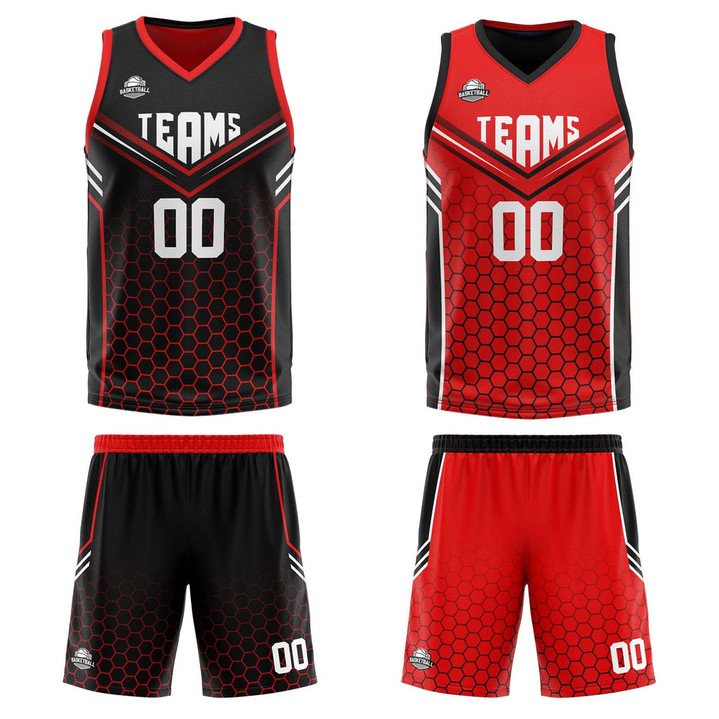Custom Black Red Reversible Basketball Suit for Adults and Kids Personalized Jersey