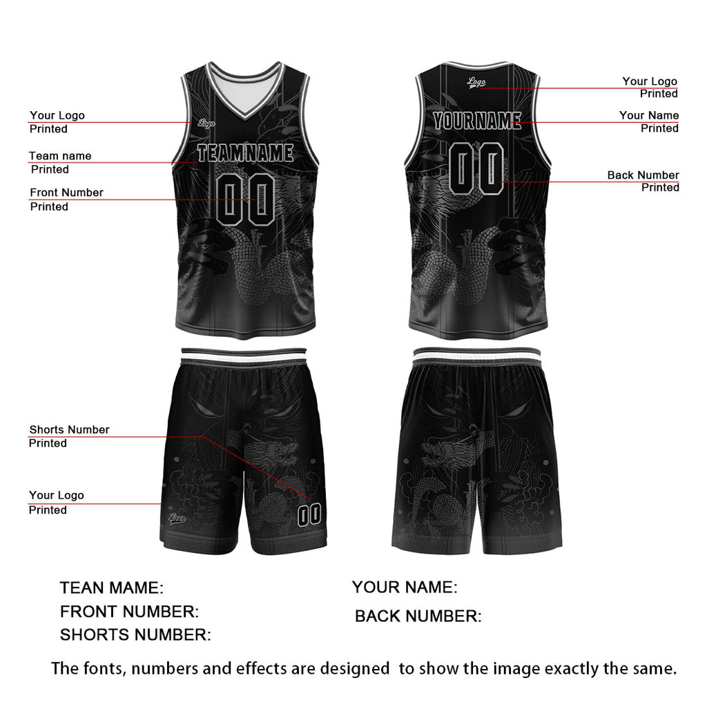 Custom Black Reversible Basketball Suit for Adults and Kids Personalized Jersey