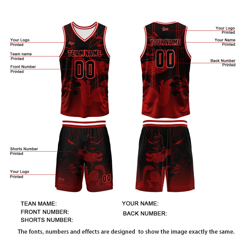 Custom Red Reversible Basketball Suit for Adults and Kids Personalized Jersey