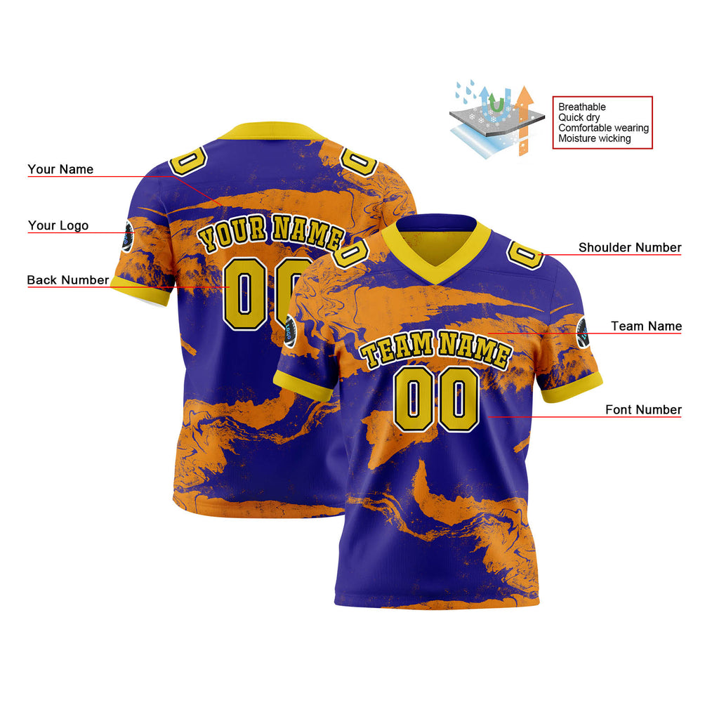 Custom Blue Orange Football Jersey Personalized Gradient Football Shirts for Men Printed Team Name Number Logo