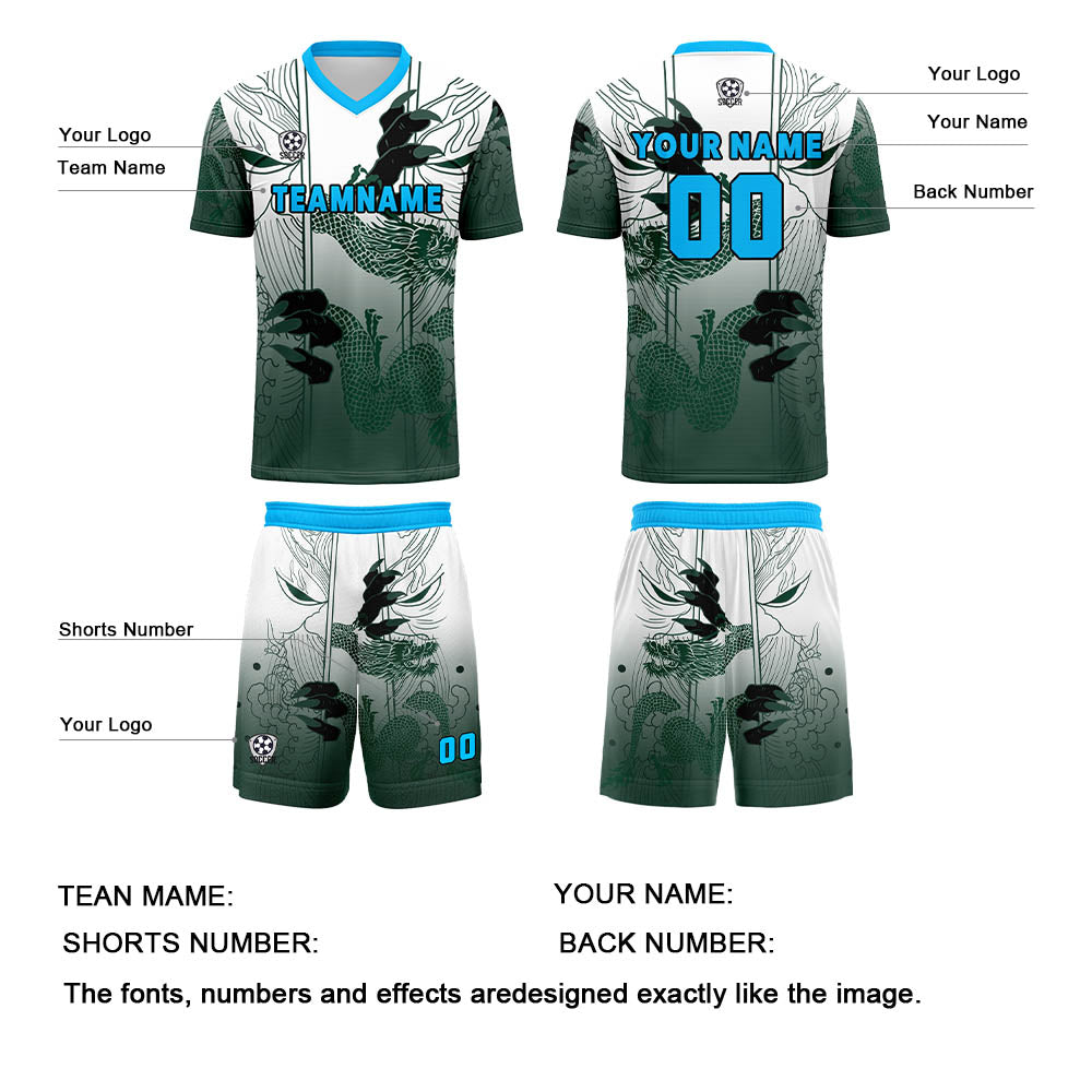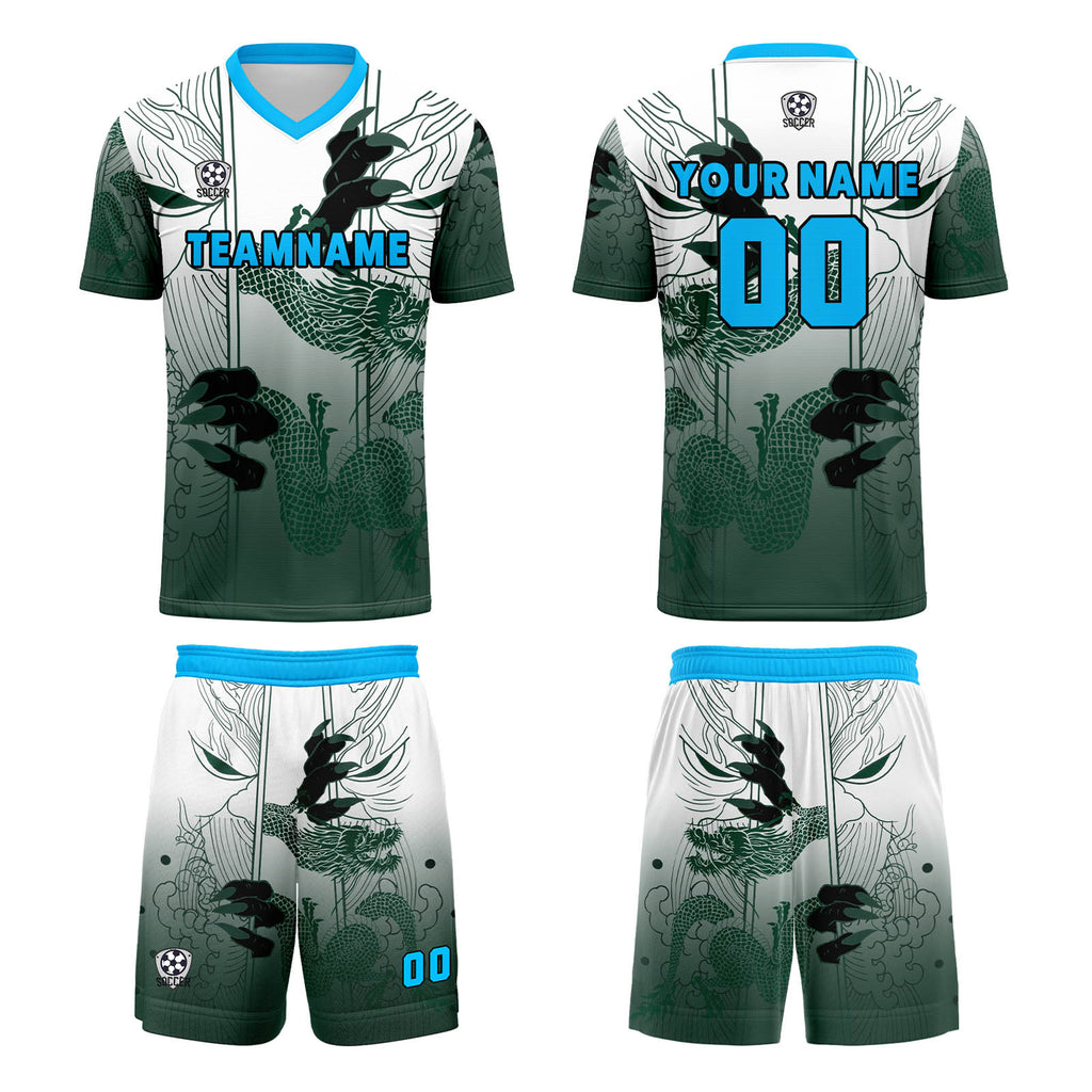 Custom Green Blue Jerseys for Men Women Personalized Soccer Uniforms for Adult and Kid