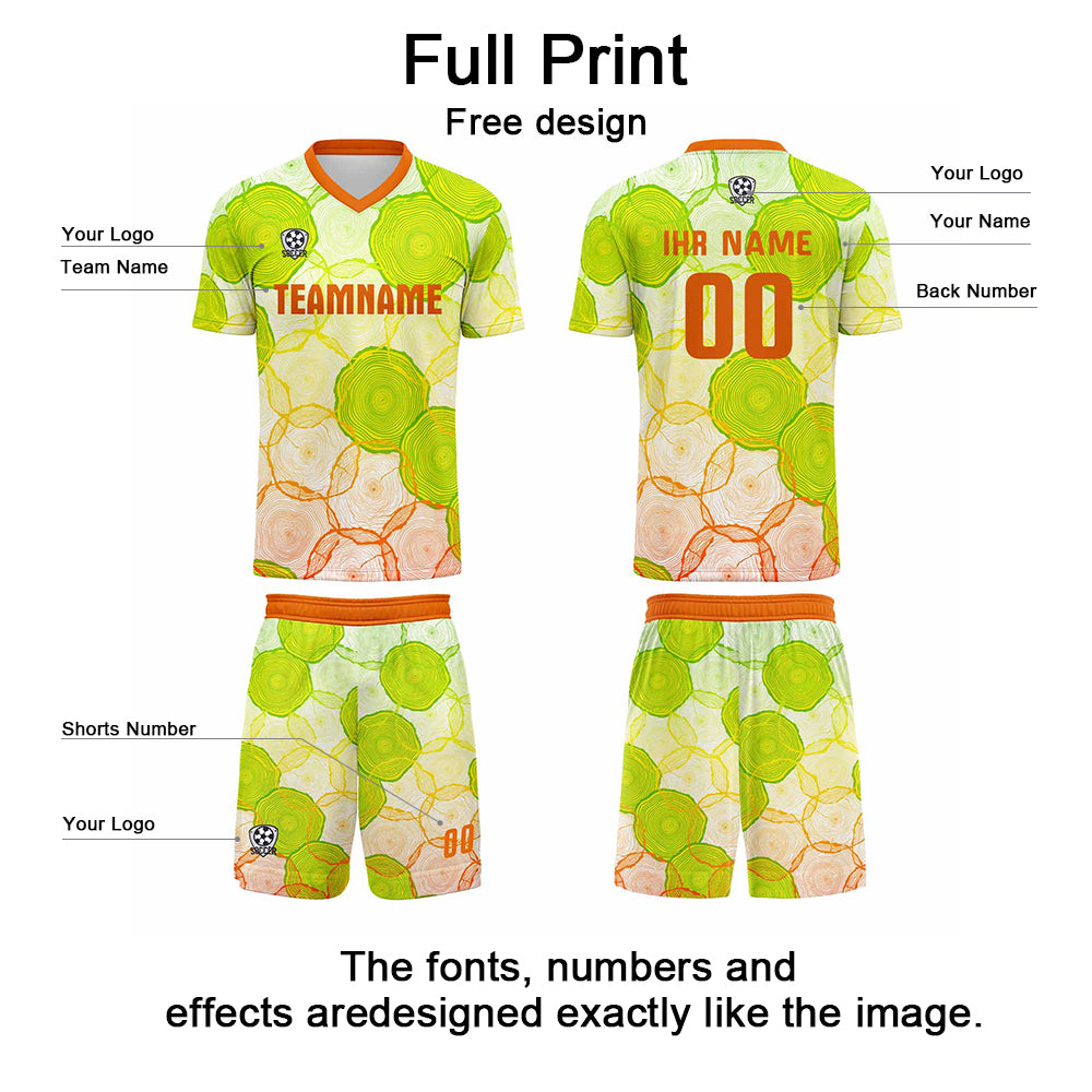 Custom Green Orange Jerseys for Men Women Personalized Soccer Uniforms for Adult and Kid