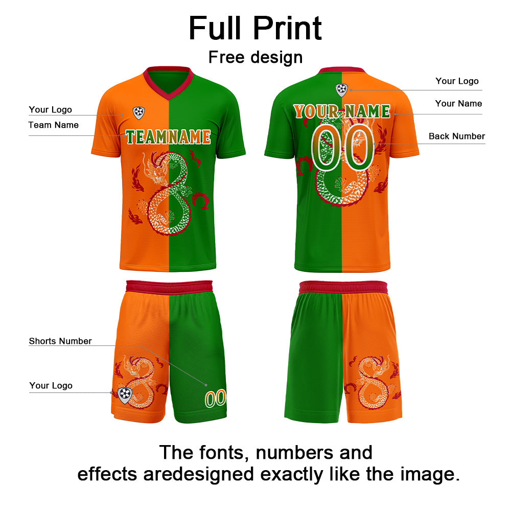 Custom Orange Green Soccer Jerseys for Men Women Personalized Soccer Uniforms for Adult and Kid