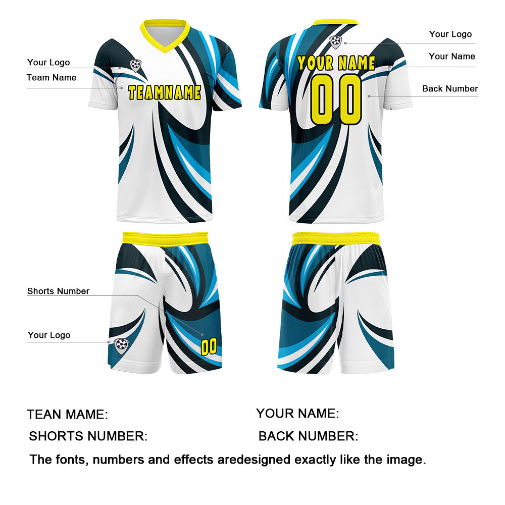 Custom Soccer Jerseys Set - Made of Quick-Dry 100% Polyester, Professional Sports Fabrics Sublimation Digital Printing , Jersey is Made With Breathable. Short With Drawstring at Waist.