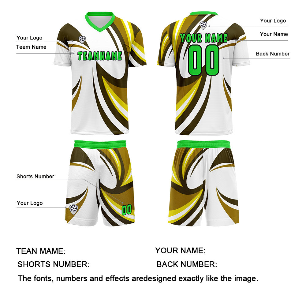 Custom White Yellow Jerseys for Men Women Personalized Soccer Uniforms for Adult and Kid
