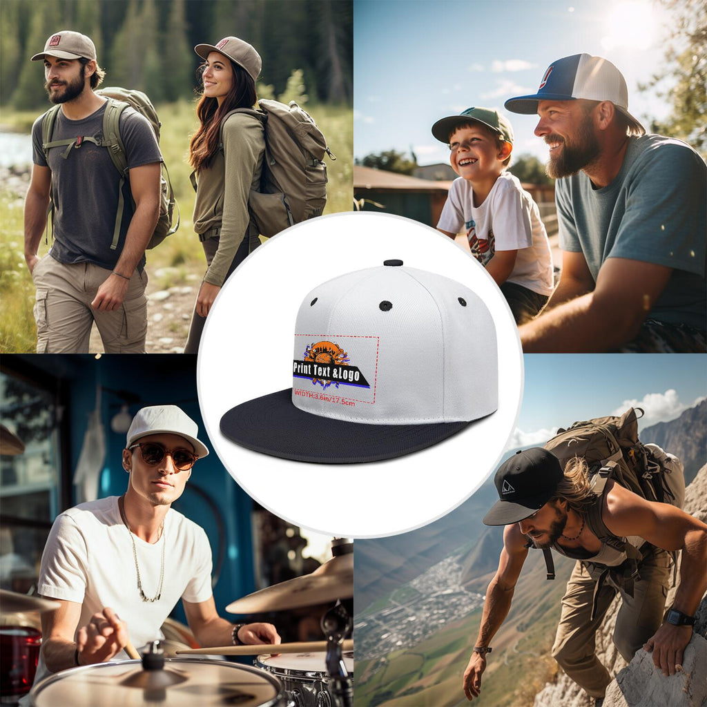 Custom Black Top Contrast Flat Brim Cap Personalize Your Style