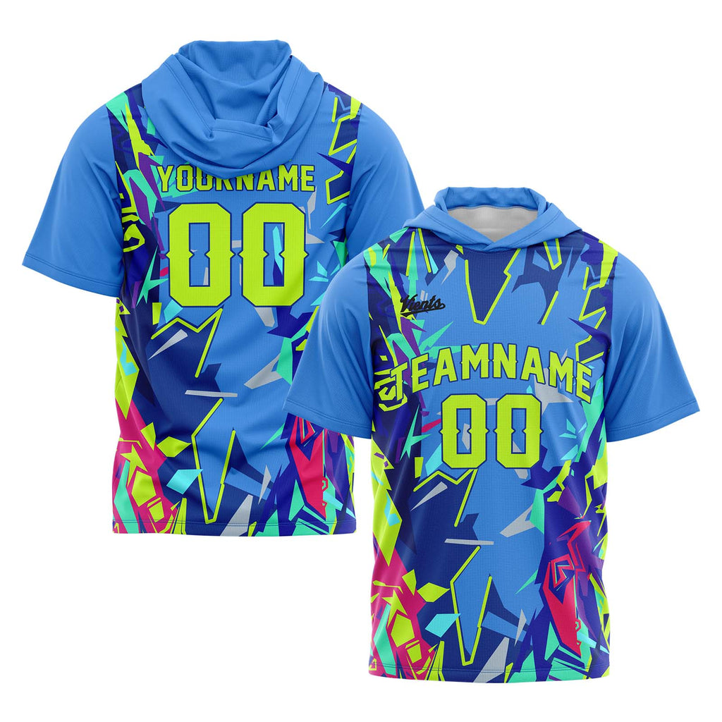 Custom Blue Neon Green Sleeve Hoodies for Men Women Shirts with Hoods Printed Name Logo